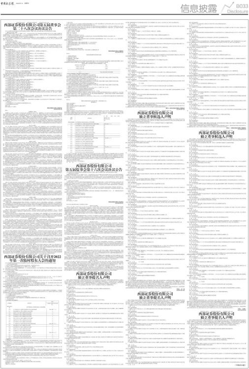 证券代码:002673 证券简称:西部证券 公告编号:2022-028