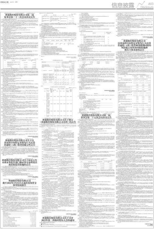科德数控股份有限公司(以下简称“公司”)于2022年5月13日分别召开了第二届董事会第二十五次会议、第二届监事会第二十三次会议,审议通过了《关于公司以简易程序向特定对象发行人民币普通股(A股)股票方案的议案》《关于公司以简易程序向特定对象发行人民币普通股(A股)股票的预案的议案》等相关议案。《科德数控股份有限公司以简易程序向特定对象发行人民币普通股(A股)股票的预案》等相关文件已于2022年5月14日在上海证券交易所指定信息披露平台及信息披露媒体上进行披露,敬请投资者查阅。