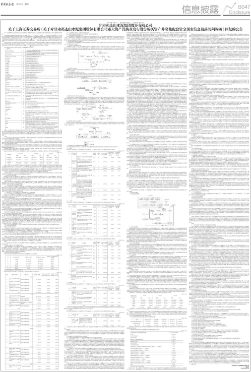 甘肃祁连山水泥集团股份有限公司(以下简称“公司”、“上市公司”、“祁连山”)于2022年5月12日披露了《甘肃祁连山水泥集团股份有限公司重大资产置换及发行股份购买资产并募集配套资金暨关联交易预案》及相关文件,并于2022年5月24日收到了上海证券交易所下发的《关于对甘肃祁连山水泥集团股份有限公司重大资产置换及发行股份购买资产并募集配套资金预案信息披露的问询函》(上证公函【2022】0464号)(以下简称“问询函”)。根据问询函的相关要求,公司会同本次交易的相关各方及中介机构就问询函所提问题逐项进行了认真分析、核查,现将问询函中的有关问题予以回复公告。
