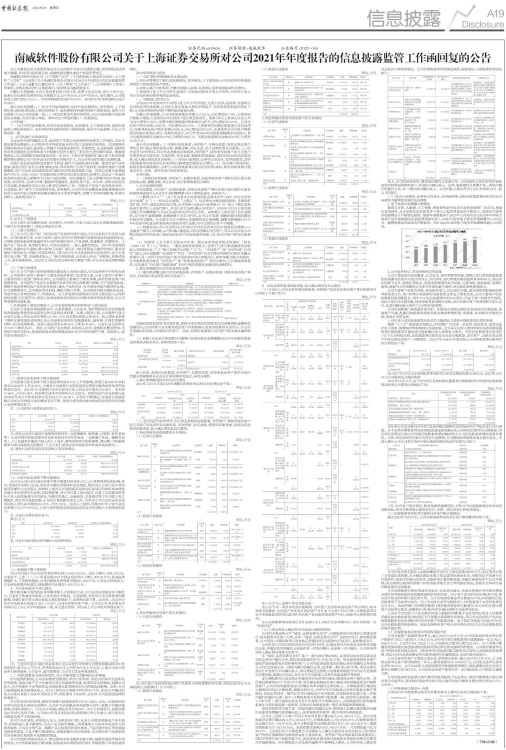 南威软件股份有限公司(以下简称“公司”)于近期收到上海证券交易所(以下简称“上交所”)出具的《关于南威软件股份有限公司2021年年度报告的信息披露监管工作函》(上证公函【2022】0520号)(以下简称“《工作函》”),公司根据《工作函》的要求,对相关事项进行认真核查后,现将相关问题回复如下:
