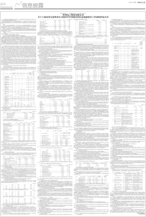 公司近日收到上海证券交易所上市公司管理一部发来的《关于对特变电工股份有限公司2021年年度报告的信息披露监管工作函》(上证公函【2022】0405号)(以下简称《工作函》)。收到《工作函》后,公司高度重视,立即组织相关人员及审计机构对《工作函》所列问题认真研究、核查,现就有关问题回复如下: