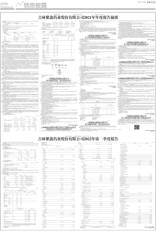 吉林紫鑫药业股份有限公司2022年第一季度报告