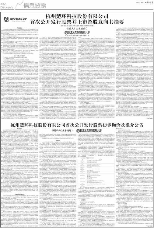杭州楚环科技股份有限公司首次公开发行股票初步询价及推介公告