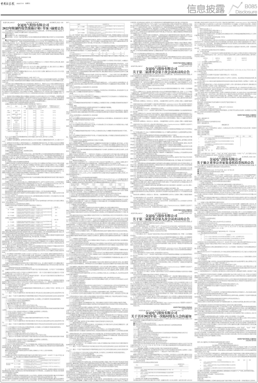 证券代码:688517 证券简称:金冠电气 公告编号:2022-038