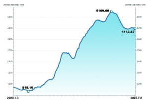 2020年以来上海出口集装箱运价指数走势