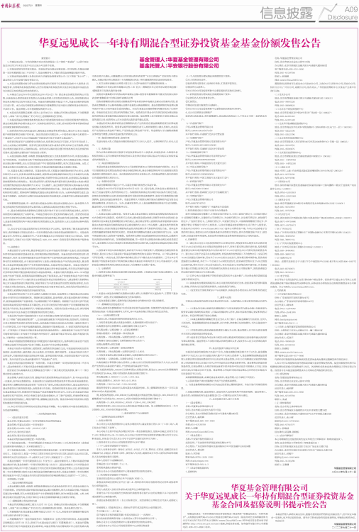 12、本公告仅对本基金发售的有关事项和规定予以说明。投资者欲了解本基金的详细情况,请详细阅读《华夏远见成长一年持有期混合型证券投资基金招募说明书》。本基金的基金合同、托管协议、招募说明书、产品资料概要及本公告将同时刊登在本公司网站。投资者如有疑问,可拨打本公司客户服务电话(400-818-6666)及各发售代理机构客户服务电话。