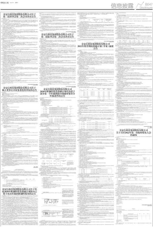 具体内容详见同日在上海证券交易所网站(www.sse.com.cn)上披露的《奇安信科技集团股份有限公司关于召开2022年第一次临时股东大会的通知》(公告编号:2022-040)。