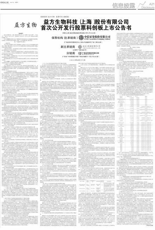 益方生物科技(上海)股份有限公司(以下简称“益方生物”、“本公司”、“发行人”或“公司”)股票将于2022年7月25日在上海证券交易所科创板上市。
