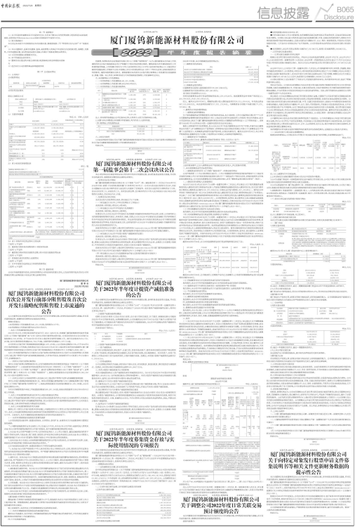 具体内容详见公司刊登在上海证券交易所网站(www.sse.com.cn)的《厦门厦钨新能源材料股份有限公司2022年半年度报告》及《厦门厦钨新能源材料股份有限公司2022年半年度报告摘要》。