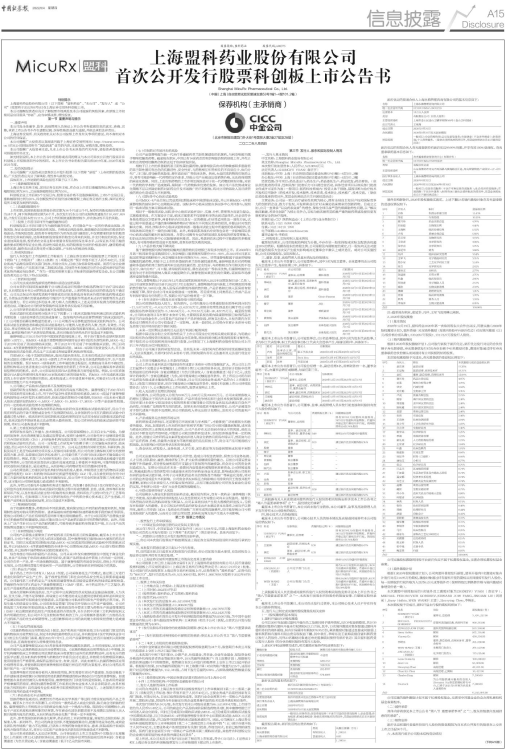 中文名称:上海盟科药业股份有限公司