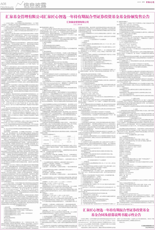 1、汇泉匠心智选一年持有期混合型证券投资基金(以下简称“本基金”)的发售已获中国证券监督管理委员会2022年6月7日证监许可〔2022〕1169号文注册募集。