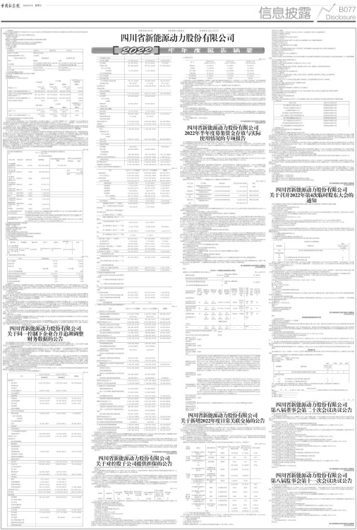 具体内容详见与本公告同时刊登的《四川省新能源动力股份有限公司2022年半年度报告摘要》和《四川省新能源动力股份有限公司2022年半年度报告》,公告编号:2022-072号、073号。