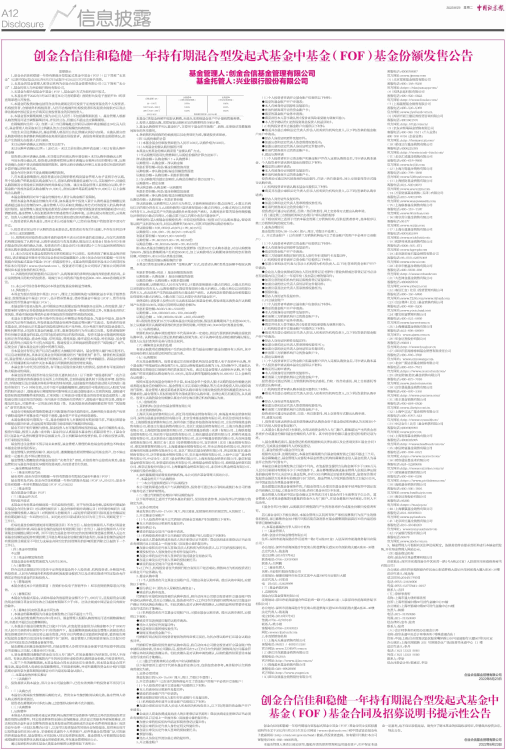 11、本公告仅对本基金发售的有关事项和规定予以说明。投资者欲了解本基金的详细情况,请详细阅读刊登在中国证监会指定信息披露媒介上的《创金合信佳和稳健一年持有期混合型发起式基金中基金(FOF)招募说明书》。本基金的招募说明书及本公告将同时发布在本公司网站(www.cjhxfund.com)。投资者亦可通过本公司网站了解本公司的详细情况和本基金发售的相关事宜。
