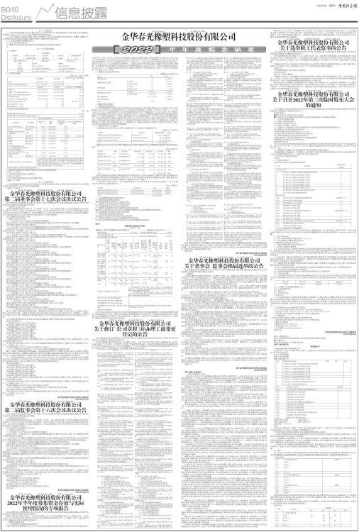 金华春光橡塑科技股份有限公司(以下简称“公司”)第二届董事会第十七次会议通知和会议材料于2022年8月12日以专人送达、电子邮件等方式发出。会议于2022年8月24日在公司会议室以现场和通讯结合的方式召开。本次会议应出席董事7人,实际出席董事7人。公司监事及高级管理人员列席会议。本次会议的通知、召开、表决程序符合《公司法》等有关法律法规和《公司章程》的规定。