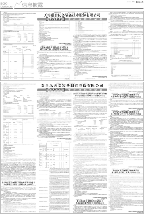 天海融合防务装备技术股份有限公司(以下简称“公司”)第五届董事会第十八次会议做出决议,决定于2022年9月13日(星期二)14:30召开2022年第一次临时股东大会,现将有关事项通知如下: