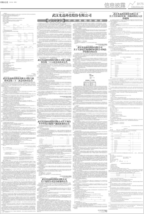 《武汉光迅科技股份有限公司关于2022年半年度计提资产减值准备的公告》详见《证券时报》《中国证券报》《上海证券报》《证券日报》和巨潮资讯网。
