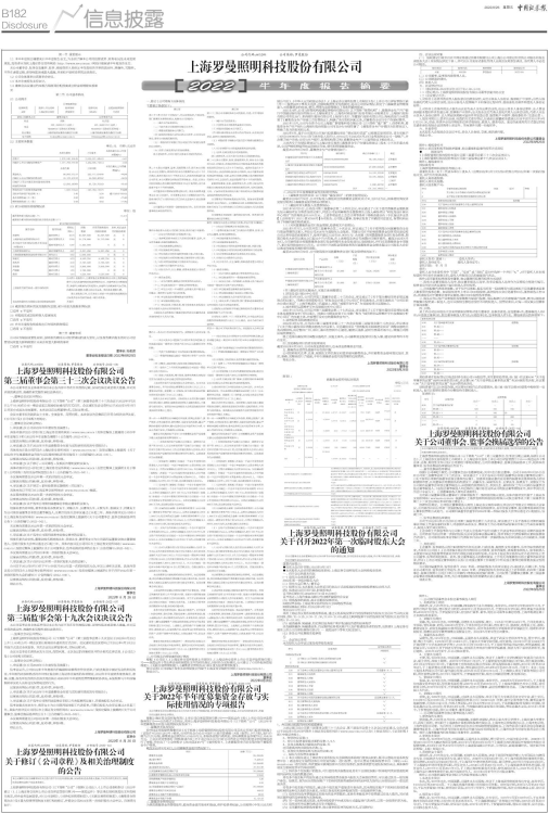 上海罗曼照明科技股份有限公司(以下简称“公司”)第三届董事会第三十三次会议于2022年8月25日上午10:00在公司一楼会议室以现场结合通讯的方式召开。会议通知及会议资料已于2022年8月16日以书面方式送达全体董事。本次会议应出席董事9名,实际出席9名。
