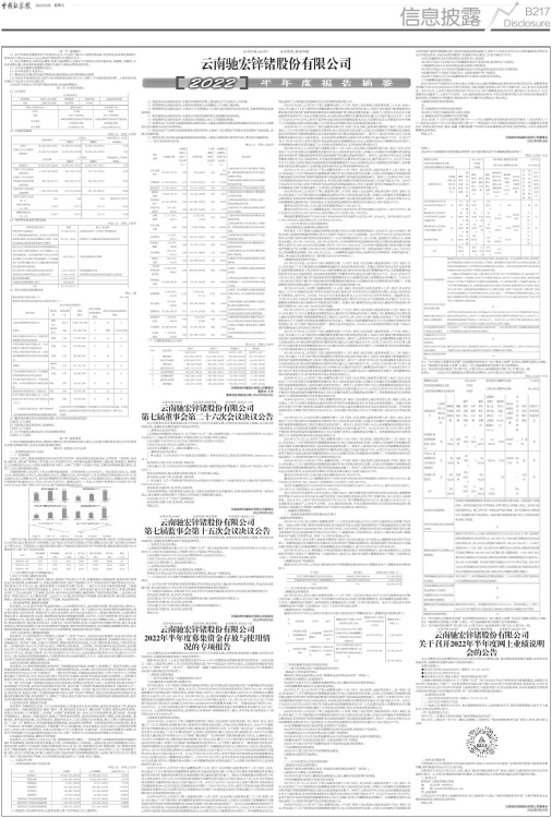 云南驰宏锌锗股份有限公司(以下简称“公司”)拟于2022年8月26日在指定的信息披露媒体上披露公司2022年半年度报告,为便于广大投资者更加全面深入地了解公司2022年半年度经营成果、财务状况,公司计划于2022年9月2日召开2022年半年度网上业绩说明会,与投资者进行互动交流和沟通,在信息披露允许的范围内就投资者普遍关注的问题进行回答,并广泛听取投资者的意见和建议。