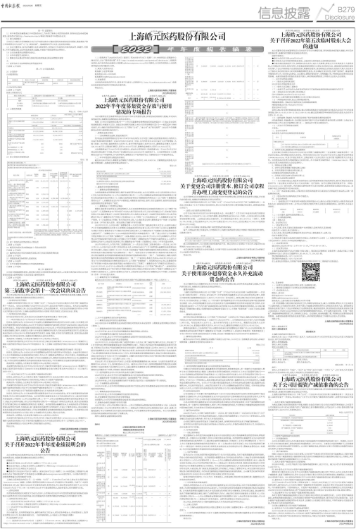 证券代码:688131 证券简称:皓元医药 公告编号:2022-079
