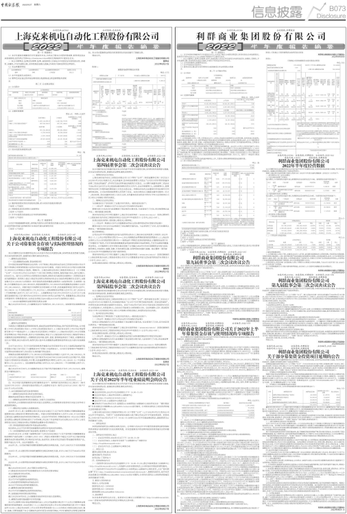具体内容详见公司于同日披露于上海证券交易所网站(www.sse.com.cn)及指定媒体的《上海克来机电自动化工程股份有限公司2022年半年度报告》(公告号:2022-046)。