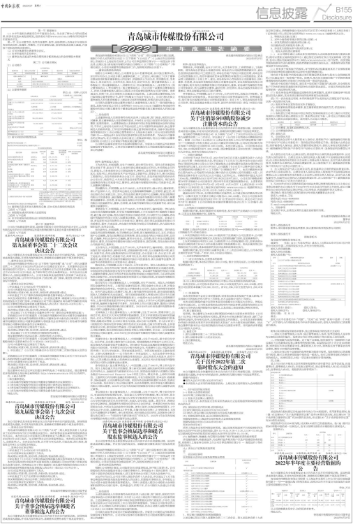 详情请见公司于同日披露的《青岛城市传媒股份有限公司关于注销部分回购股份减少注册资本的公告》(临2022-034号公告)。