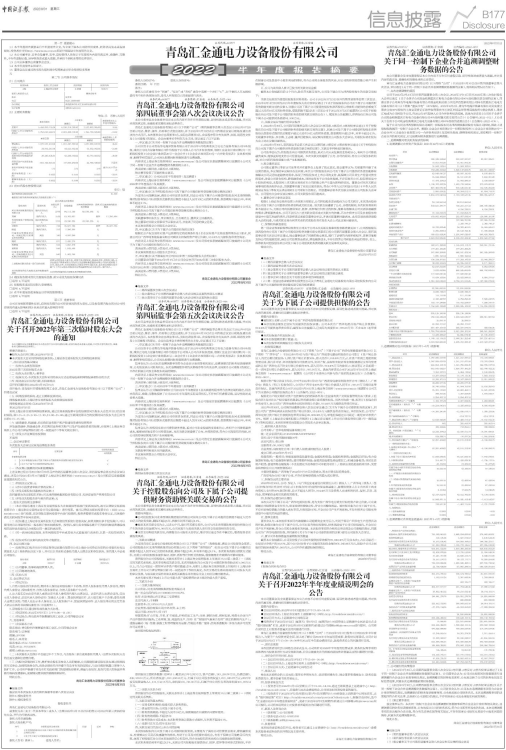 青岛汇金通电力设备股份有限公司(以下简称“公司”)第四届董事会第八次会议于2022年8月20日前以电话、微信、邮件、书面等方式发出通知,并于2022年8月30日在公司四楼会议室以现场及通讯表决的方式召开。本次董事会应出席董事9名,实际出席董事9名。会议程序符合有关法律、法规、规范性文件及《公司章程》的规定。会议由董事长李明东先生主持,审议通过了以下议案:
