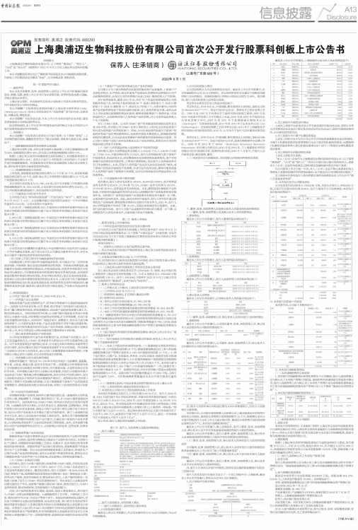 上海奥浦迈生物科技股份有限公司首次公开发行股票科创板上市公告书