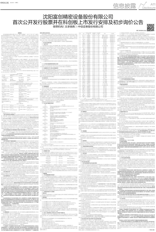8、投资风险特别公告:初步询价结束后,发行人和保荐机构(主承销商)确定的发行价格超过网下投资者剔除最高报价部分后剩余报价的中位数和加权平均数,以及公募产品、社保基金和养老金剩余报价的中位数和加权平均数的孰低值的,将在申购前发布的《沈阳富创精密设备股份有限公司首次公开发行股票并在科创板上市投资风险特别公告》(以下简称“《投资风险特别公告》”)中说明相关情况。