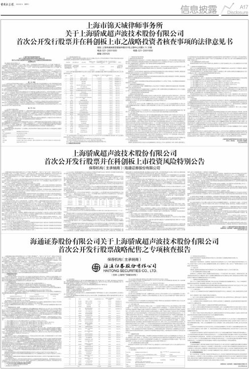 上海市锦天城律师事务所(以下简称“本所”)接受海通证券股份有限公司(以下简称“海通证券”、“保荐机构”或“主承销商”)的委托,委派本所律师为海通证券作为主承销商组织实施的上海骄成超声波技术股份有限公司(以下简称“发行人”、“公司”)首次公开发行股票并在科创板上市(以下简称“本次发行”)所涉战略投资者事项进行核查。
