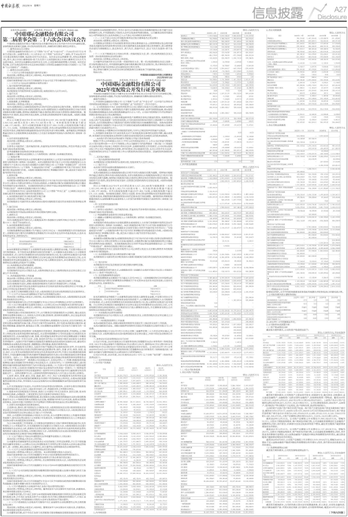 具体内容请参阅与本公告同日披露的《中金公司2022年度配股公开发行证券预案》。