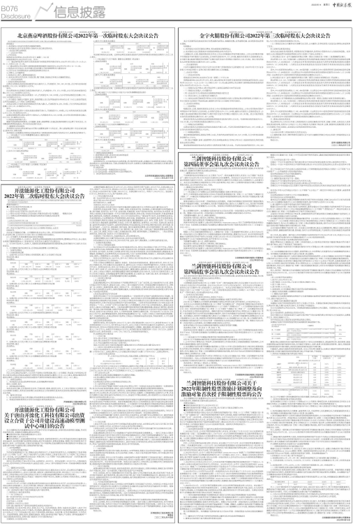1、公司2022年第一次临时股东大会决议。