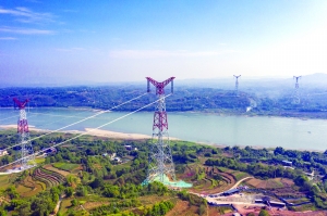 9月13日在重庆市江津区拍摄的白鹤滩-浙江±800千伏特高压直流输电工程重庆段(右)长江大跨越施工现场(无人机照片)。当日,历经13天连续施工,“西电东送”大动脉白鹤滩-浙江±800千伏特高压直流输电工程(白浙线)重庆段顺利完成长江大跨越放线作业。白浙线是国家“西电东送”、清洁能源外送的重大电网工程,途经四川、重庆、湖北、安徽、浙江5省市,线路长度2140公里。其中重庆段线路长度331.25公里,于2021年10月启动建设,计划于9月底实现全线贯通,11月具备带电条件。新华社图文