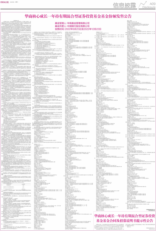 华商核心成长一年持有期混合型证券投资基金基金合同及招募说明书提示性公告