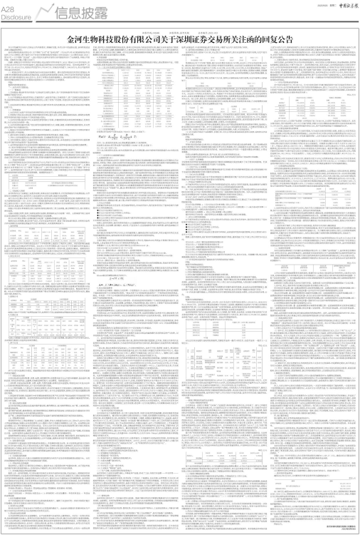 金河生物科技股份有限公司关于深圳证券交易所关注函的回复公告