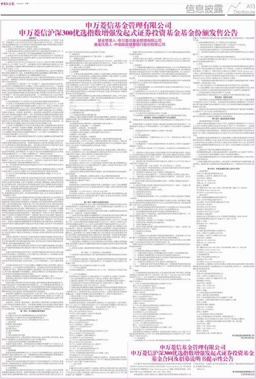 14、本公告仅对本基金募集的有关事项和规定予以说明。投资者欲了解本基金的详细情况,请详细阅读《申万菱信沪深300优选指数增强发起式证券投资基金招募说明书》(以下简称“招募说明书”)等相关法律文件。
