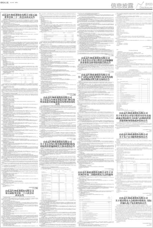 《山东益生种畜禽股份有限公司2022年度非公开发行A股股票预案》刊登于巨潮资讯网(www.cninfo.com.cn)。