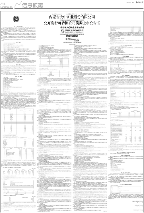 2022年7月14日,中国证监会出具《关于核准内蒙古大中矿业股份有限公司公开发行可转换公司债券的批复》(证监许可〔2022〕1498号),核准公司本次可转换公司债券发行。