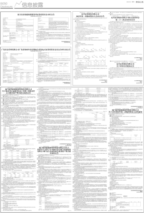 ●报备文件:东兴证券股份有限公司2022年第一次临时股东大会决议