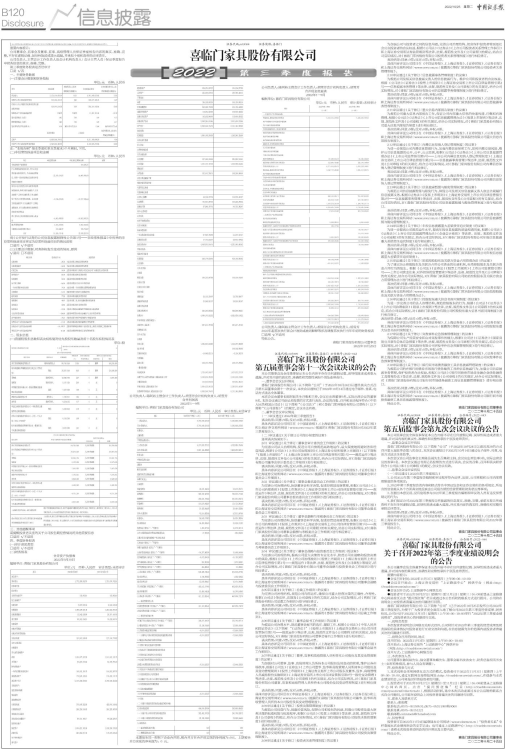 具体内容详见公司同日在《中国证券报》、《上海证券报》、《证券时报》、《证券日报》和上海证券交易所网站(www.sse.com.cn)披露的《喜临门家具股份有限公司2022年第三季度报告》。
