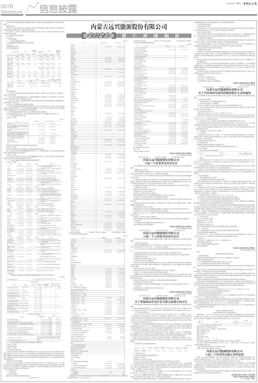 1.内蒙古远兴能源股份有限公司(以下简称公司)于2022年10月19日以书面、传真或电子邮件方式向公司12名董事发出了关于召开八届三十次董事会会议的通知。