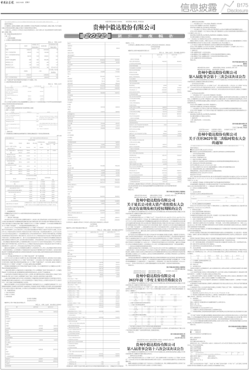 贵州中毅达股份有限公司(以下简称“公司”)第八届董事会第十六次会议(以下简称“本次会议”)于2022年10月25日以现场与通讯表决相结合的方式召开。会议应参加表决董事7名,实际参加表决董事7名。