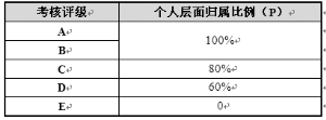 激励对象个人层面绩效考核按照公司现行的相关规定组织实施,并依照激励对象的考核结果确定其实际归属的股份数量。激励对象的绩效考核结果划分为A、B、C、D、E五个档次,届时根据以下考核评级表中对应的个人层面归属比例确定激励对象的实际归属的股份数量: