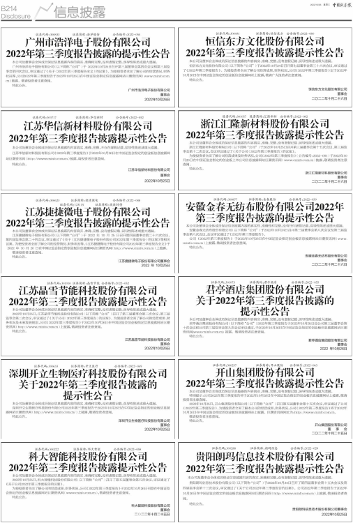 2022年第三季度报告披露提示性公告