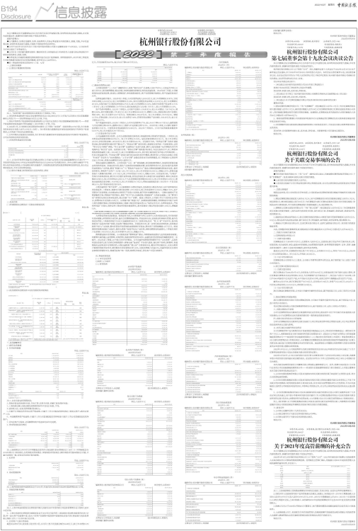 ●公司于2022年10月26日召开了杭州银行股份有限公司第七届董事会第十九次会议,以书面传签方式审议通过了本季度报告。