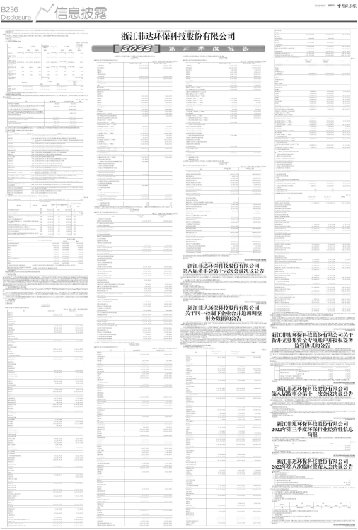 内容详见同期披露的《浙江菲达环保科技股份有限公司2022年第三季度报告》。