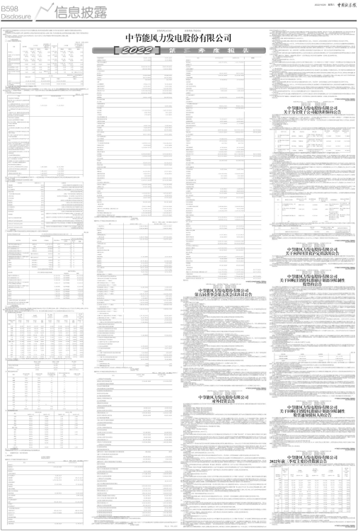 中节能风力发电股份有限公司(以下简称“公司”)根据上海证券交易所《上市公司行业信息披露指引第四号-电力》的要求,现将2022年前三季度公司主要经营数据公告如下: