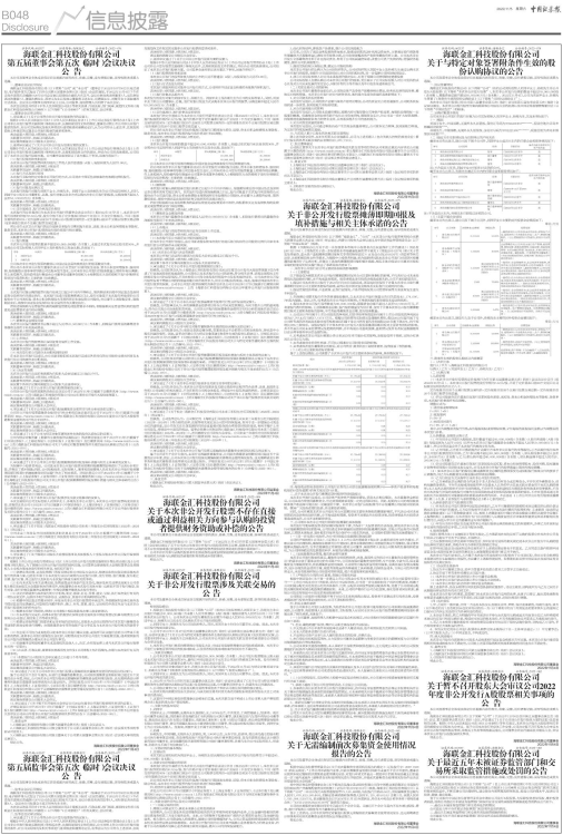 证券代码:002537 证券简称:海联金汇 公告编号:2022-076