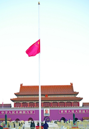 自告全党全军全国各族人民书发布之日起到江泽民同志追悼大会举行之日止,北京天安门、新华门、人民大会堂、外交部和香港中联办、澳门中联办、我驻外使领馆下半旗志哀。
