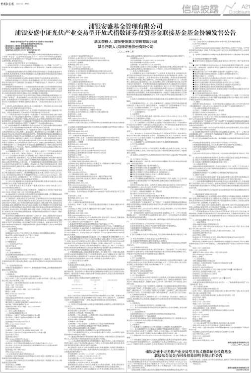 浦银安盛中证光伏产业交易型开放式指数证券投资基金联接基金基金份额发售公告
