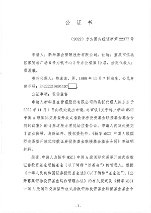 2、《新华MSCI中国A股国际交易型开放式指数证券投资基金联接基金以通讯方式召开基金份额持有人大会的第一次提示性公告》